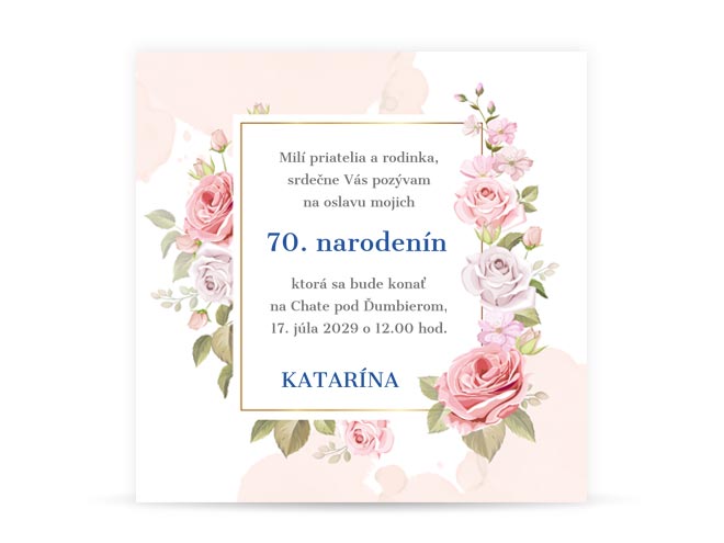 Pozvánky na 70 tku Kvety v geometrickom útvare 70 -